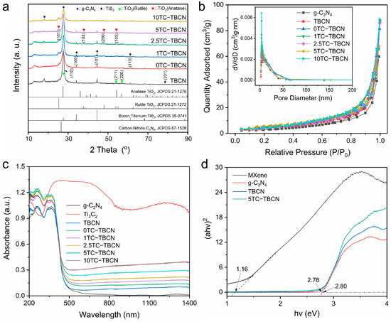 - Chen, L.; Ye, X.Y.; Chen, S.; Ma, L.; Wang, Z.P.; Wang, Q.T.; Hua, N.B.; Xiao, X.Q.; Cai, S.G.; Liu, X.H. Ti3C2 MXene nanosheet/TiO2 composites for efficient visible light photocatalytic activity. Ceram. Int. 2020, 46, 25895–25904. [Google Scholar] [CrossRef]
