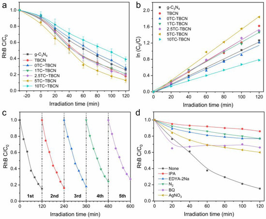 - Zhang, X.; Li, M.J.; Liu, C.; Zhang, Z.Y.; Zhang, F.C.; Liu, Q.P. Enhanced the efficiency of photocatalytic degradation of methylene blue by construction of Z-scheme g-C3N4/BiVO4 heterojunction. Coatings 2021, 11, 1027. [Google Scholar] [CrossRef]