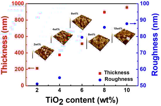 Thickness and roughness of the coating layers with different TiO2 particle contents.