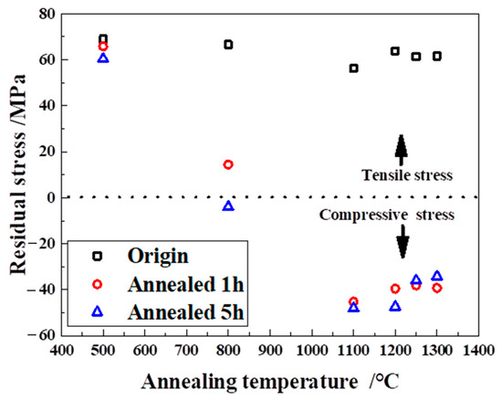 Residual stress (tested using the sin2ψ method) variations with differences in annealing temperatures and times.