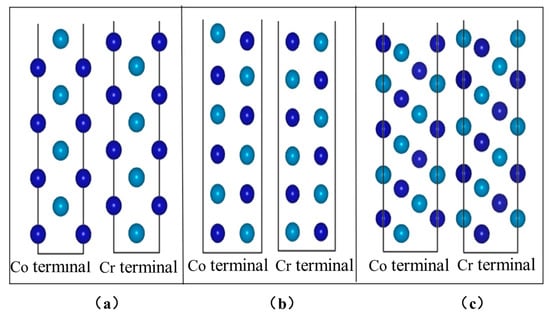 Combinations of different CoCr atoms: (a) CoCr (100), (b) CoCr (110), and (c) CoCr (111).
