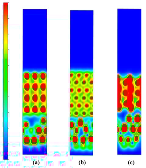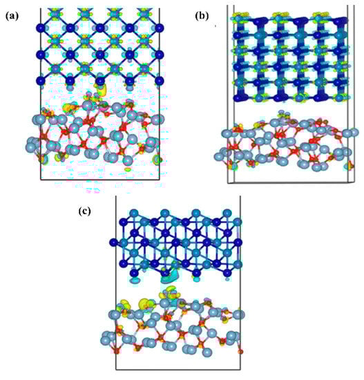 Then, we can observe the charge density and differential charge density of the three models, as shown in Figure 18. Due to the small amount of Al2O3 added, the charge density of the models with 5% and 7.5% added is basically the same. Combined with the calculation results of the split wave density of states, this again shows that the 5% added model is better.