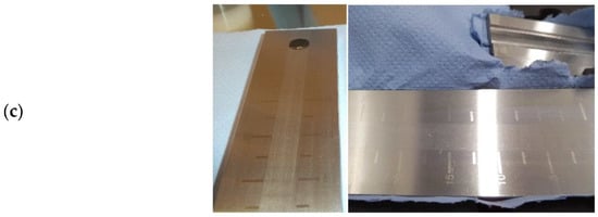 Slurry particle tests were performed with a Hegman gauge (Baoshishan grindometer 0–25 µm). After all slurries were rested for a minimum of 48 h, each was applied to the upper end of the gauge before sweeping with a steel blade angled at approximately 60 degrees. The gauge was photographed within 10 s and rinsed with deionized water and ethanol between uses. Photographs were used to assess the suspended particle dispersion by recording the beginning and end of visible color fade (Figure 2c).