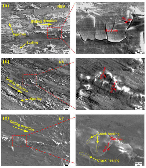 - Zhai, W.Z.; Lu, W.L.; Zhang, P.; Wang, J.; Liu, X.J.; Zhou, L.P. Wear-triggered self-healing behavior on the surface of nanocrystalline nickel aluminum bronze/Ti3SiC2 composites. Appl. Surf. Sci. 2018, 436, 1038–1049. [Google Scholar] [CrossRef]
