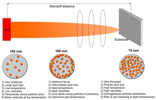 The use of design of experiments (DOE), involving methods such as Taguchi design, can aid to significantly reduce unnecessary iterations. Additionally, particle diagnostic tools, such as particle velocity monitoring and substrate temperature monitoring, could help to screen the iterations, to start with a reasonable DOE [30,31].