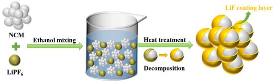 - Xiong, X.; Wang, Z.; Yin, X.; Guo, H.; Li, X. A modified LiF coating process to enhance the electrochemical performance characteristics of LiNi0.8Co0.1Mn0.1O2 cathode materials. Mater. Lett. 2013, 110, 4–9. [Google Scholar] [CrossRef]