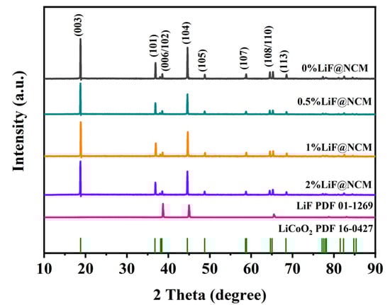 Zhou, S.; Zhang, X.; Zhang, Z.; Liu, S.; Wang, R. Improving the Electrochemical Performance of LiNi1/3Co1/3Mn1/3O2 Cathode Material by LiF Modification. Coatings 2023, 13, 727. https://doi.org/10.3390/coatings13040727