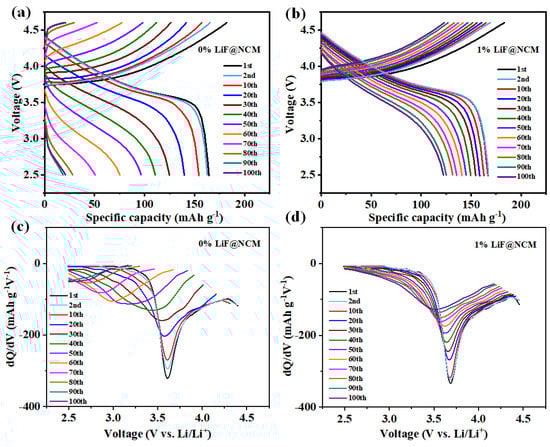 - Liu, K.; Zhang, Q.; Dai, S.; Li, W.; Liu, X.; Ding, F.; Zhang, J. Effect of F– doping and LiF coating on improving the high-voltage cycling stability and rate capacity of LiNi0.5Co0.2Mn0.3O2 cathode materials for lithium-ion batteries. ACS Appl. Mater. Interfaces 2018, 10, 34153. [Google Scholar] [CrossRef] [PubMed]