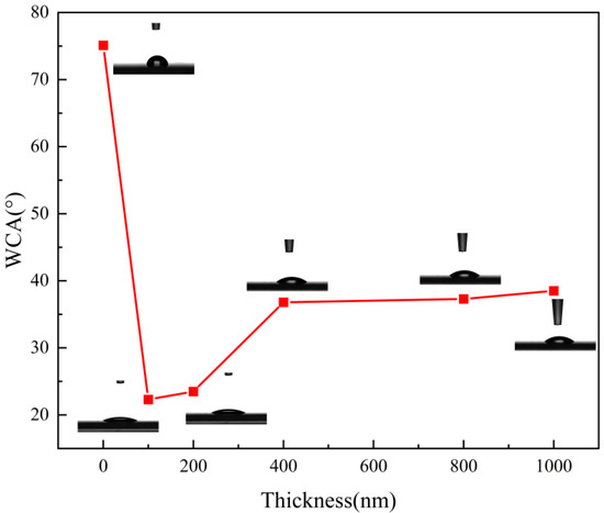 In order to study the influence of film thickness on the surface hydrophilicity of mineral hydrophilic antifogging film, the contact angles of films with different thicknesses were measured.