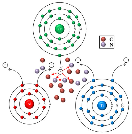 Schematic diagram of gain and loss of electrons of Al, Ti and Cr in the coating structure.
