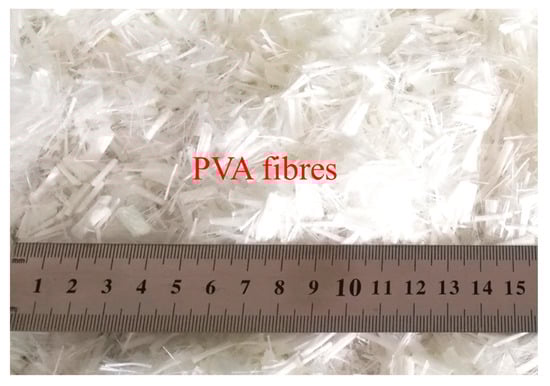 Polyvinyl alcohol (PVA) fibers are a kind of organic synthetic material, which has many advantages compared with other fiber materials. PVA fibers have high strength and ductility with a relatively high elastic modulus, outstanding resistance to corrosion without toxicity, high hydrophilicity in alkaline environments in concrete, strong bonding with cement matrix, low cost, and effective restriction of cracking of concrete over the long term [,,,]. PVA fibers have been widely used in many applications in civil engineering such as the fiber-cement used as an asbestos replacement, Engineered Cementitious Composites (ECC), strengthening of enlarged sections for concrete structures, and various kinds of shotcrete, and play a promising role in fire resistance, toughening, and anti-cracking in concrete [].