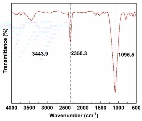 The chemical compositions of the nano-carbon were explored by using FTIR. Figure 5 illustrates the FTIR spectrum of the nano-carbon before and after annealing, as well as the characteristic absorption peaks. The absorption peak at 3443.9 cm−1 belonged to the stretching vibration of the O−H bonds in the cellulose and hemicellulose. During the annealing, small molecular functional groups (−OH, −COOH) were prone to dehydroxylation and decarboxylation reactions, producing small-molecule gas products, such as CO2, H2O, and CH4 (Equations (1) and (2)). Therefore, the −OH in the raw materials was mainly transferred to gaseous products in the form of small-molecule gas components. The surface micro-nano structure and the dehydroxylation and decarboxylation reactions of the nano-carbon increased and determined the surface hydrophobic properties of the materials. The C≡N−stretching vibration peaks of the nano-carbon were nearly 2350.3 cm−1, and the C−O−expansion vibration peak on the biomass carbon was 1095.5 cm−1, revealing that the surfaces of biochar made from cow dung and corn straw may have abundant functional groups.