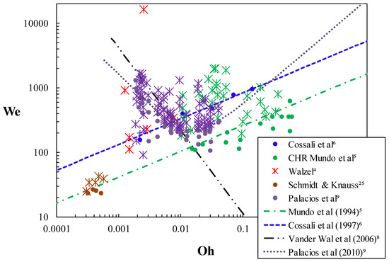 Cossali et al. [6] proposed a combination of the Weber and Ohnesorge numbers, which can also be expressed in terms of a critical Weber number based on Ohnesorge number as follows: