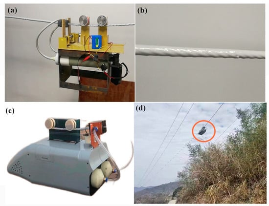 The widespread distribution and complex structure of overhead conductors [1,2,3] can easily trip in stormy weather and affect the safety and reliability of the power supply. Insulation of overhead bare wires, which can avoid grid failures due to natural causes, is the best way to ensure the safe and stable operation of the line. Conventional methods of modifying the insulation of bare wires include the replacement of wires and the coating of bare wires. Yet, these methods require arranging relevant line outages, which seriously affects power supply reliability. The use of insulation coating robots [4,5,6] to conduct the electric insulation spraying of wires can effectively solve the safety hazards of bare wire, not only to protect the reliability of the power supply and provide residential electrical safety, but also to reduce the operational risk of operators.