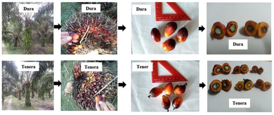 Dura and tenera oil palm fresh fruit bunches taken from 5–10-year-old oil palm trees.