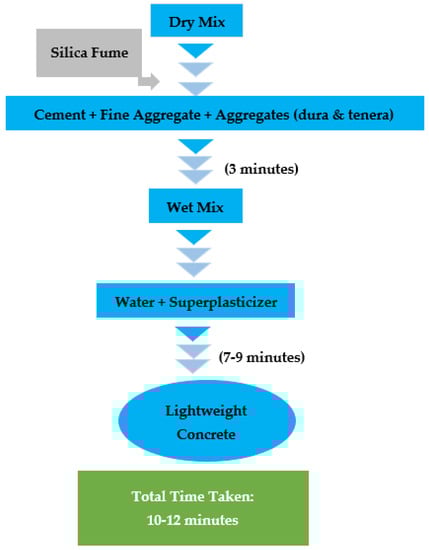 Lightweight concrete is the most popular building material for constructing certain civil infrastructure projects. In general, more than ten billion tons of concrete is produced annually, consisting of natural aggregate such as crushed rock, fine sand, and gravel [,]. The construction sector contributes substantially to society and economic development by improving well-being and quality of life [,,]. The construction industry also significantly impacts the environment, accounting for a considerable portion of natural resource depletion. The current trend in the construction industry is towards using alternative renewable construction materials. Therefore, growing awareness has been paid to the various surface modification methods of renewable aggregate to minimise the impact towards resources, thereby reducing environmental impact to produce environmentally friendly concrete [,,,].