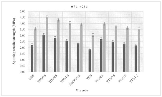 The splitting tensile strength of untreated and treated LWPA concrete.