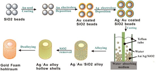- Tan, X.; Niu, G.; Li, K.; Luo, J.; Han, S.; Ma, Y.; Li, J.; Tang, Y. Preparation of monolithic foamed Au/Ag alloy with hollow microspheres. High Power Laser Part. Beams 2012, 24, 353–356. [Google Scholar]