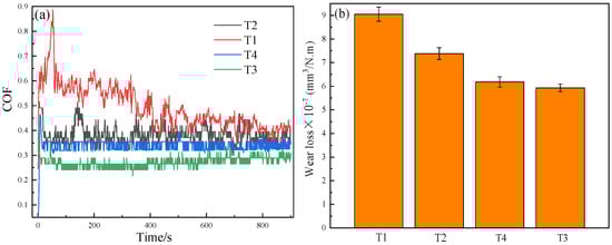 Results of friction–wear test: (a) Friction coefficient and (b) Wear loss rate.