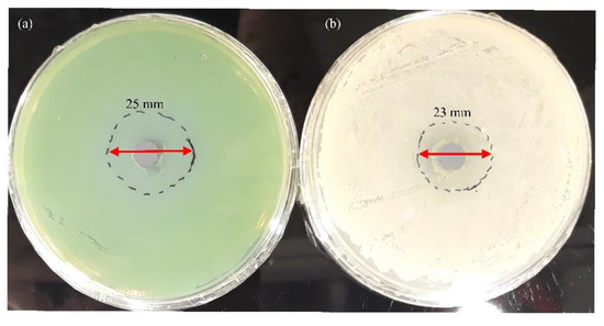 Antibacterial activity of pure Al NPs. Zone of inhibition of Al NP against (a) P. aeruginosa and (b) B. subtilis after 24 h.