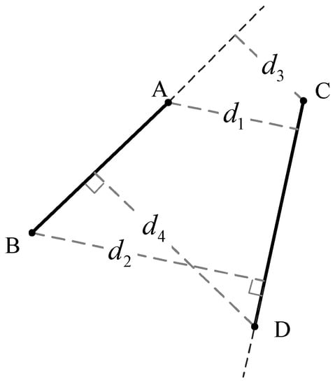 As is shown in Figure 5, is the shortest distance from the point to the line segment , is the shortest distance from the point to the line segment , is the shortest distance from the point to the line segment , and is the shortest distance from the point to the line segment .