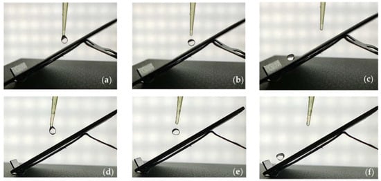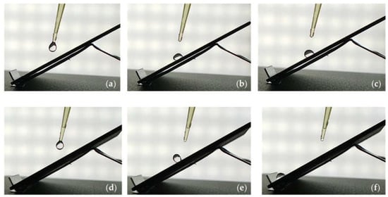 - Backholm, M.; Molpeceres, D.; Vuckovac, M.; Nurmi, H.; Hokkanen, M.J.; Jokinen, V.; Timonen, J.V.I.; Ras, R.H.A. Water Droplet Friction and Rolling Dynamics on Superhydrophobic Surfaces. Commun. Mater. 2020, 1, 64. [Google Scholar] [CrossRef]