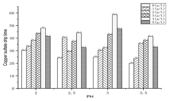 CuSO4 solution with a mass fraction of 3 wt.% was prepared at room temperature. According to the GB437-1993 copper sulfate test standard, the corrosion resistance of the coating prepared on the alloy surface was tested. Drops were carried out on the sample surface within the range of 1 cm2, and the time for the drops to change from blue to black was recorded after dropping CuSO4 solution. It was necessary to conduct three parallel experiments and record the average.
