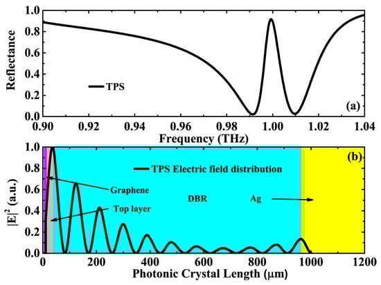 (a) The reflectance spectra of the TPS; (b) the calculated electric field of the TPS.