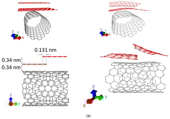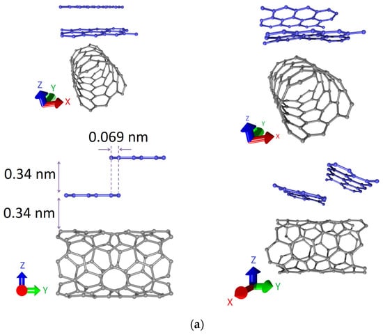 - Xu, T.; Jiang, J. On the configuration of the graphene/carbon nanotube/graphene van der Waals heterostructure. Phys. Chem. Chem. Phys. 2023, 25, 5066–5072. [Google Scholar] [CrossRef]