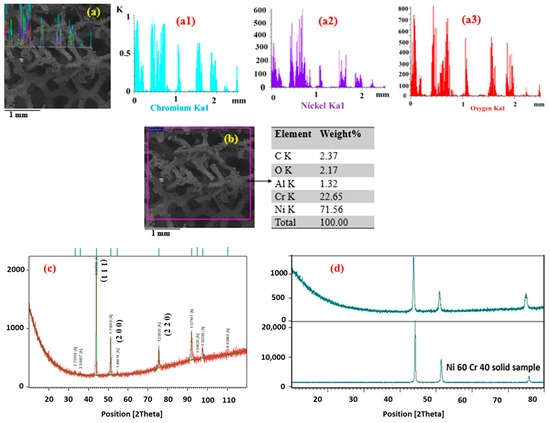 3.3. EDS and XRD Analysis of Ni-Cr Alloy Foam