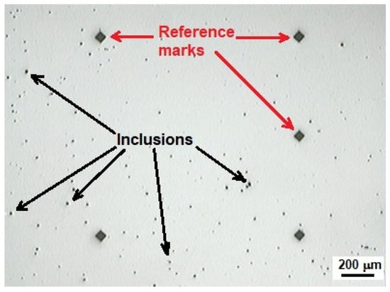 Non-metallic inclusion locational and morphological analyses were carried out using optical microscopy (Olympus, Center Valley, PA, USA). Otherwise, the chemical composition of inclusions was obtained using the SEM–EDS method. For the sake of illustration, an SEM image (obtained with the JEOL JSM-6300 (JEOL, Peabody, MA, USA)) of a non-metallic inclusion and EDS analysis (Thermo Scientific, Madison, WI, USA) of the chemical composition are shown in Figure 5.