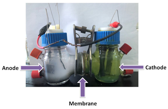 Assembly: The two-compartment microbial fuel cell (Figure 1) is mainly composed of three parts: a cathode chamber, an anode chamber, and a proton exchange membrane. The two cylindrical slots are composed of two chambers sandwiched with a proton exchange membrane. The anode and cathode chambers are fixed with rubber washers and clamped tightly to ensure that the reactor does not leak.