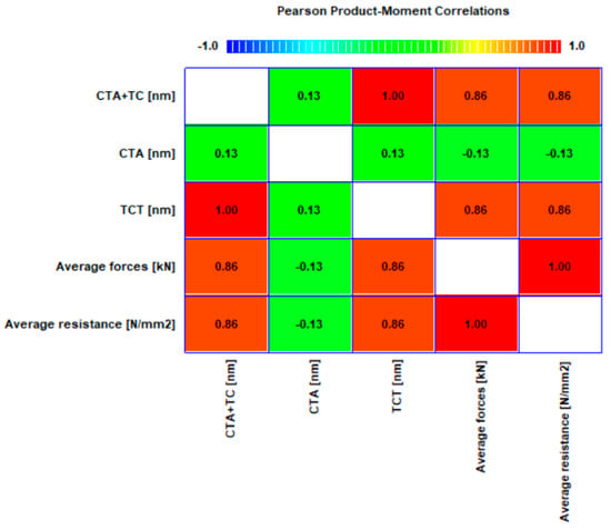 Centralized table with results of crosscut tests of specimens used in experiments.