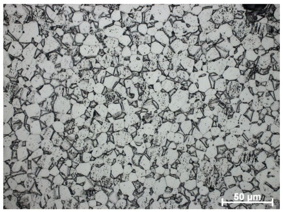 During sintering, a lamellar structure is formed in the samples; the globular structure can remain locally. It is also possible to form a duplex structure [,], where the -phase is equally present both in the form of rounded grains and in lamellar form. The formation of a duplex structure also occurs at temperatures below the -transition.