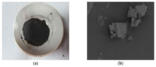 The appearance of the tourmaline used is a black powder (Figure 2), 2000 mesh, and the main components are shown in Table 2.