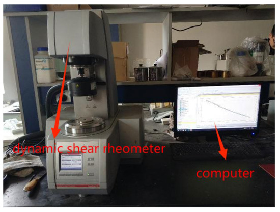 The H-PTD200 dynamic shear rheometer was produced by Anton Paar (Graz, Austria), as shown in Figure 4. The temperature control range of the instrument is −40~+200 °C, supporting the speed control range of 10−6 μrad/s~314 rad/s, equipped with a variety of parallel plates and fixtures, and supporting the test of asphalt samples under various modes such as temperature scanning and frequency scanning.