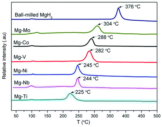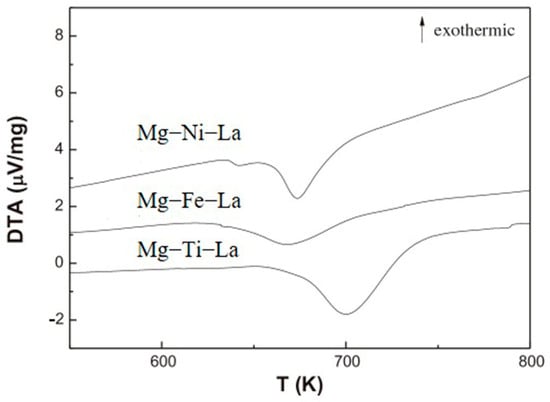 DTA curve of Mg−TM−La powder after hydrogen absorption. Reprinted with permission from Ref. []. Copyright 2013, Elsevier.