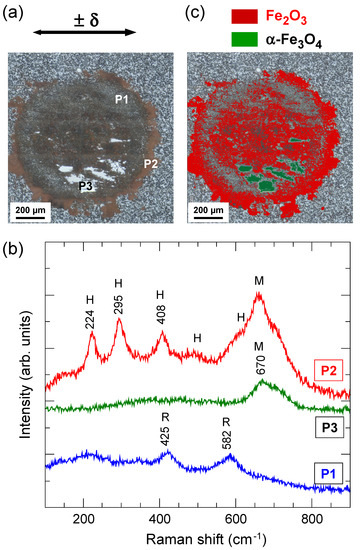 - de Faria, D.L.A.; Lopes, F.N. Heated goethite and natural hematite: Can Raman spectroscopy be used to differentiate them? Vib. Spectrosc. 2007, 45, 117–121. [Google Scholar] [CrossRef]