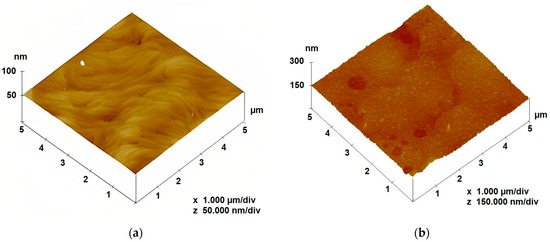 AFM images displaying the surface morphology of the grown layers: (a) undoped GaN; (b) Mg-doped GaN layer.