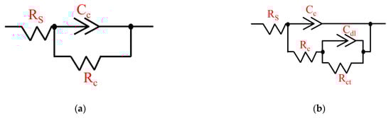 The equivalent circuit model used to fit the Nyquist diagram of (a) a single semicircle and (b) two semicircles.