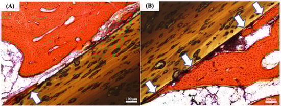 Toluidine blue fuchsine staining shows new bone tissue formation around PEEK (A) and PEPA (B). Reprinted with permission from ref. [50]. Copyright 2019 Elsevier.