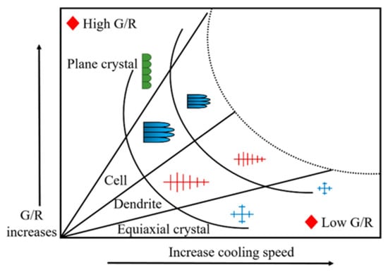 Temperature gradient–growth rate diagram to determine the morphology of grains.