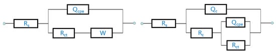The exposure periods contain one distinct half-semi-circle loop in the Nyquist plots at a higher studied frequency and a small tail at a lower studied frequency (Figure 6 and Figure 7). The lower frequency plots are attributed to the deposition of corrosion products on the surface after the reaction of the coating with the solution at the coating/solution interface. This can be protective and contribute to reducing the active surface area of the coating. Furthermore, the thickening of corrosion products simultaneously occurs when the coating begins to dissolve after exposure to the solution. Initially, the corrosion products can be porous/defective and thereby allow the ingress of aggressive ions from the solution toward the coating surface and result in the formation of corrosion products. When the duration of exposure periods increases, the thickness of corrosion products increases, and thus the dimensions of semi-circle loops increase and improve the corrosion resistance. The coating contains Al and Zn, which are active metals for dissolution, and begins to corrode after exposure to the Cl− solution.