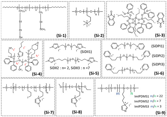 - Manceriu, L.; Bharwal, A.K. DSSC Performance of Polysiloxane Bearing Imidazolium Iodide Side Chain as function of Ionic Liquid substituent. 2022; manuscript under preparation. [Google Scholar]