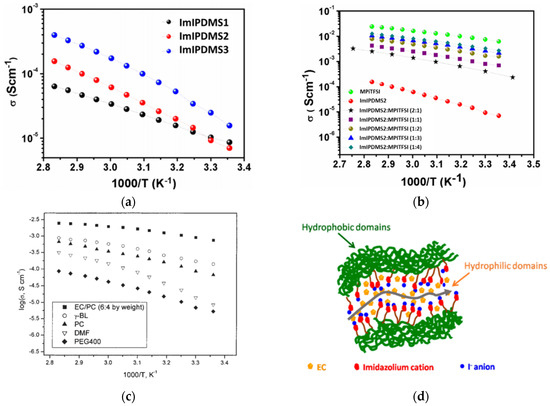 - Bharwal, A.K.; Nguyen, N.A.; Iojoiu, C.; Henrist, C.; Alloin, F. New Polysiloxane Bearing Imidazolium Iodide Side Chain as Electrolyte for Photoelectrochemical Cell. Solid State Ion. 2017, 307, 6–13. [Google Scholar] [CrossRef]