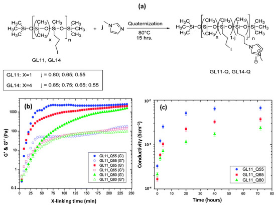 - Zhang, Z.; Jin, J.; Bautista, F.; Lyons, L.; Shariatzadeh, N.; Sherlock, D.; Amine, K.; West, R. Ion Conductive Characteristics of Cross-Linked Network Polysiloxane-Based Solid Polymer Electrolytes. Solid State Ion. 2004, 170, 233–238. [Google Scholar] [CrossRef]