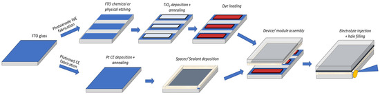 - Fakharuddin, A.; Jose, R.; Brown, T.M.; Fabregat-Santiago, F.; Bisquert, J. A Perspective on the Production of Dye-Sensitized Solar Modules. Energy Env. Sci. 2014, 7, 3952–3981. [Google Scholar] [CrossRef]