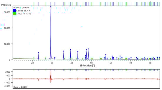 Experimental arrays of the test samples’ reflection intensities and angles were obtained on a desktop powder X-ray diffractometer (Malvern Panalytical, Malvern, United Kingdom) with the technical characteristics and in the 2θ-range described in Table 6. Preliminary processing of the experimental diffraction arrays in order to identify the phases was carried out using a Highscore + program package.