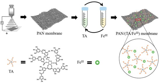 2.2. Preparation of PAN/(TA/FeIII) Nanofibrous Membranes