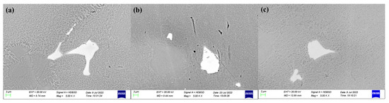 SEM diagram of precipitated phase in the middle of the air intake side, (a) 6–2 mm/min. (b) 6–6 mm/min. (c) 6–10 mm/min.